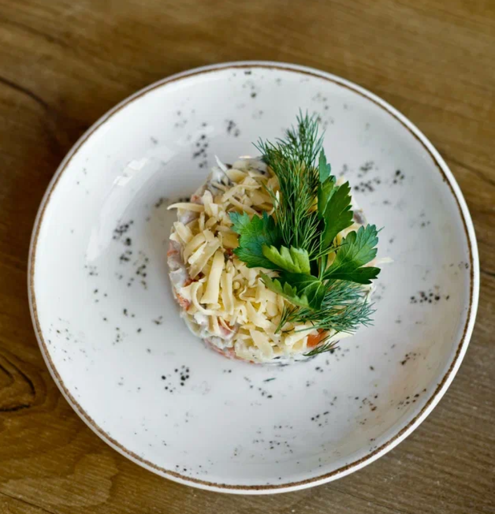 Салат Оливье с лососем