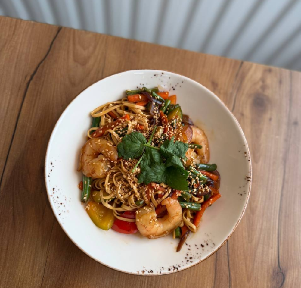 Удон с креветками и овощами