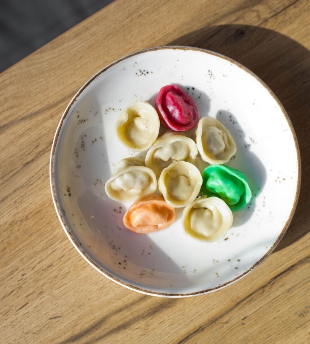 Пельмени цветные с курицей (3 шт.), пельмени с индейкой и пармезаном (3 шт.), пельмени Свинина-говядина (3 шт.) КБЖУ 311/15.2/11.7/36.2