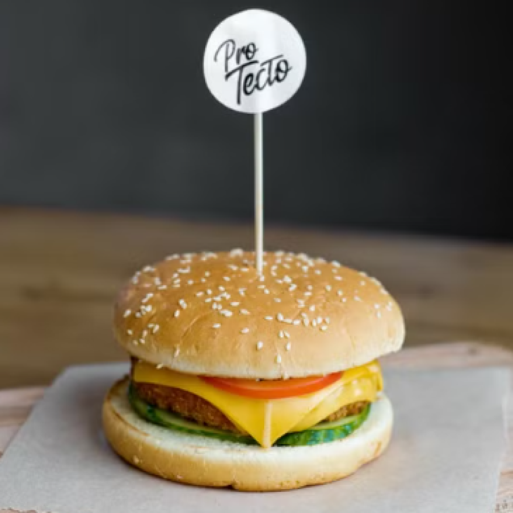 Булочка, куриная котлета из филе бедра, сыр чеддер, томат, огурец, кетчуп, салат Айсберг КБЖУ 466/15.9/20.2/55