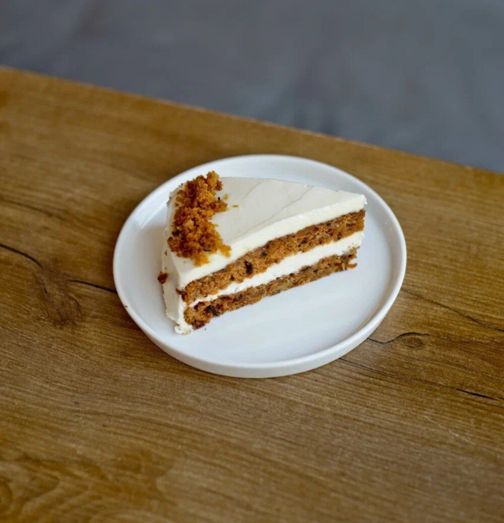 Морковь, мускатный орех,корица, сахар, мука пшеничная, крем на основе творожного сыра. КБЖУ 349/6.6/15.6/45.6