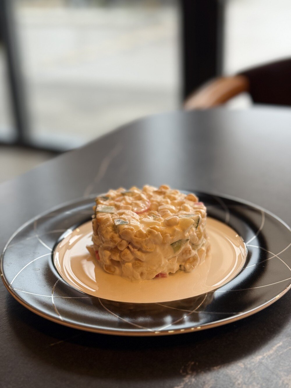 Крабовые палочки, яйцо, огурец, кукуруза, майонез.
